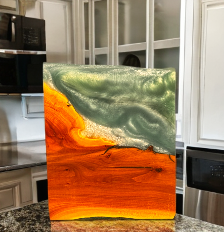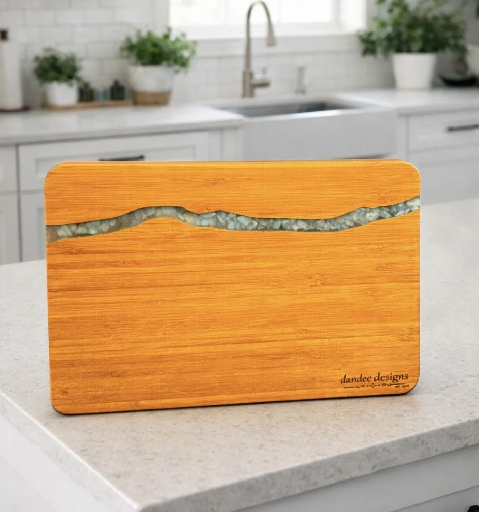 We specialize in live edge charcuterie boards, butcher block cutting boards and other unique woodcraft designs. All items can be laser personalized at an additional cost. Board sizes can be somewhat customized, as well. Call for details.